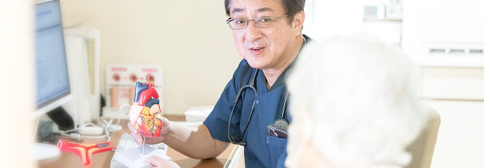診療循環器専門医の立場から循環器病にしっかり向き合い治療を行います。もちろん一般的な風邪、気管支炎、喘息、胃腸炎などにも幅広く対応いたします。