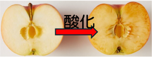 例)りんごを切って放置すると酸化して茶色くなるが、レモン汁(ビタミンC)をかけると抗酸化作用で変色を遅くすることができる。