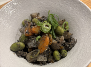 ②皿に盛り付け混ぜ合わせた和風ドレッシングをかける。