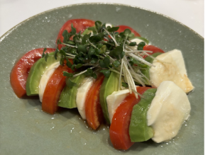 ①トマトはスライス。アボカドは種を取りスライスし、レモン汁をかける。